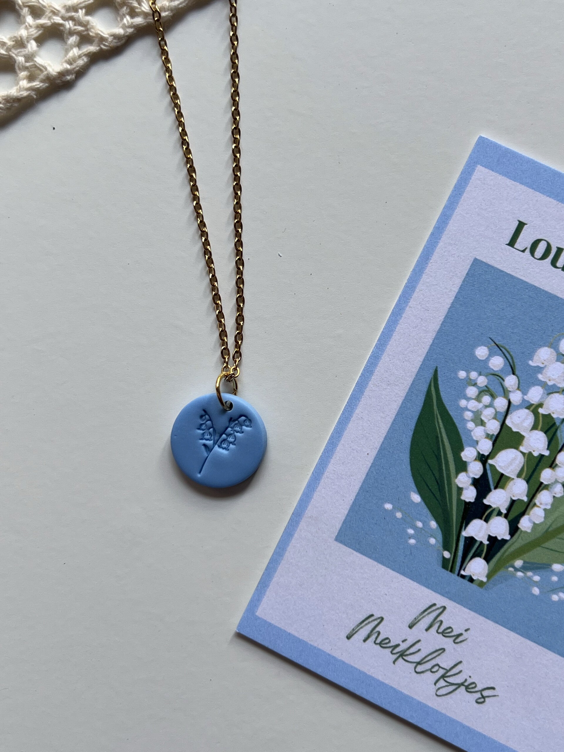 Een subtiele, handgemaakte ketting toont het meiklokje, de geboortebloem van mei. Het vertelt het verhaal van jouw geboortebloem.